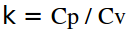 Partiremos de esta formula considerando la materia constante (n) así como las capacidades calóricas (Cp y Cv), por lo tal podría ser retirada de todos los cálculos, para simplificarles aun cuando no quedaran estos en unidad patrón. La siguiente formula a utilizar es: