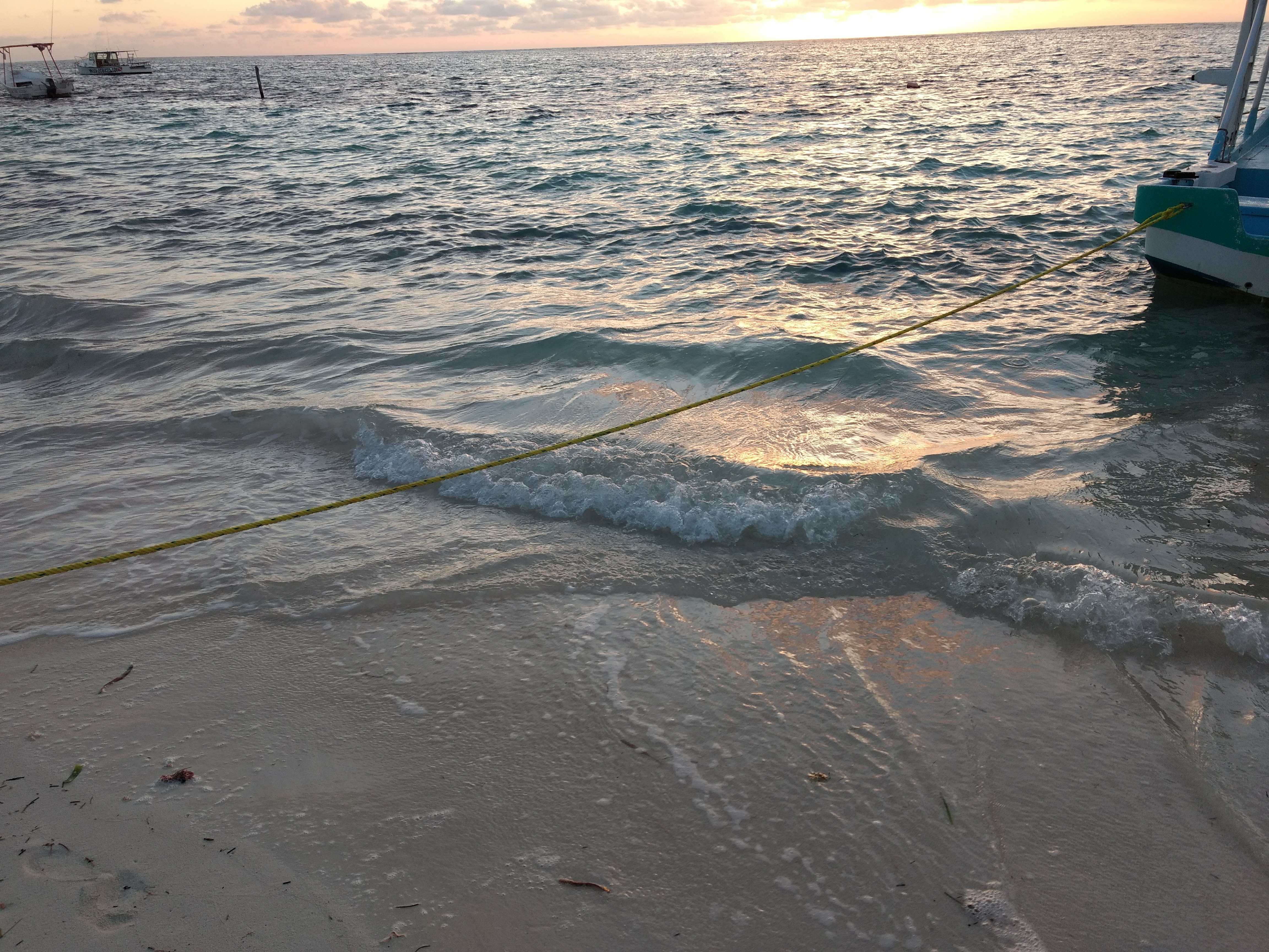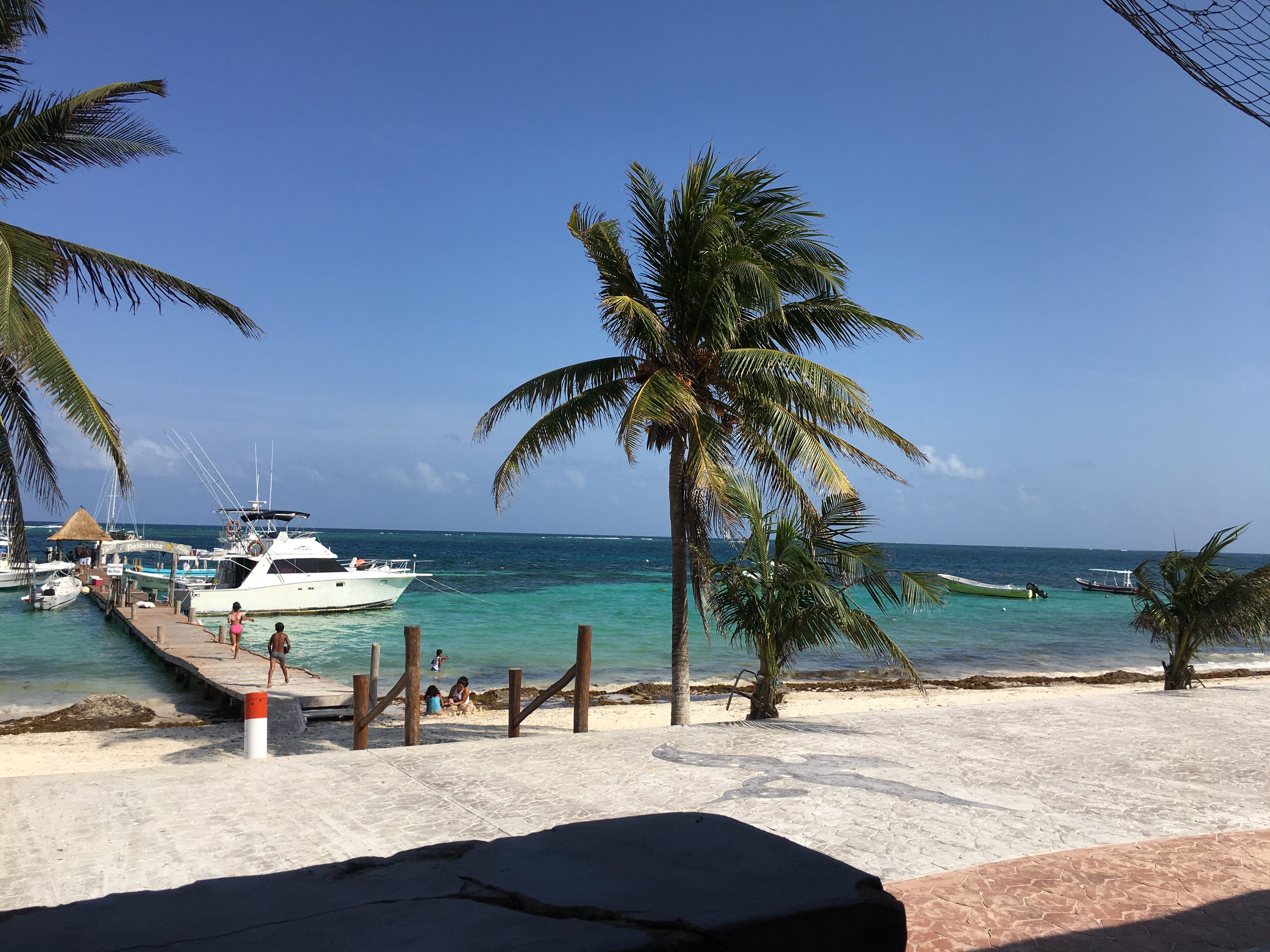 El segundo muelle, es usado para asir embarcaciones, barcos pequeños que quizá en algún momento fueron yates lujosos. Así es Puerto Morelos, un lugar modesto y tranquilo. Este muelle apenas tiene espacio para unos seis u ocho embarcaciones, aunque nunca me ha tocado ver tantas. Este muelle esta frente a uno de mis restaurantes favoritos, llamado Pelicanos (este restaurante es diurno, solo podrás desayunar o comer, así que deberas levantarte temprano). Entre este muelle y el antes mencionado hay apenas una cuadra, y en la costa hay lanchas.